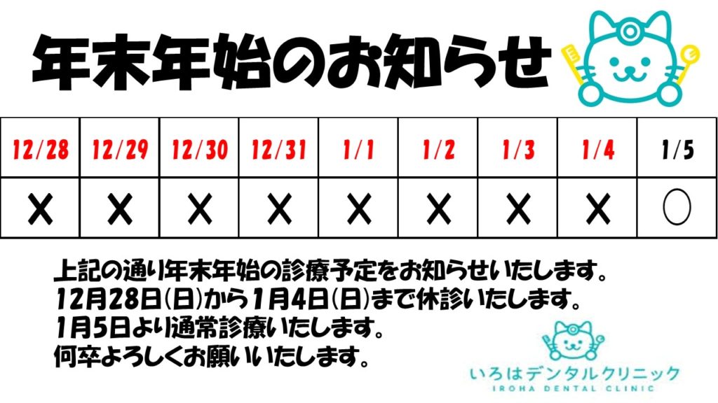 歯の『大掃除』はお済みですか?一年の汚れを落として、真っ白な歯で真っさらなカレンダーを迎えよう。
